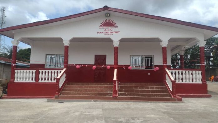 The All People’s Congress (APC) has officially opened its first party office in Constituency 072, Masiaka, Koya Chiefdom, Port Loko District. The ceremony was presided over by APC flagbearer aspirant Sheikh Alhaji Mohamed Omodu Kamara, popularly known as Jagaban.
